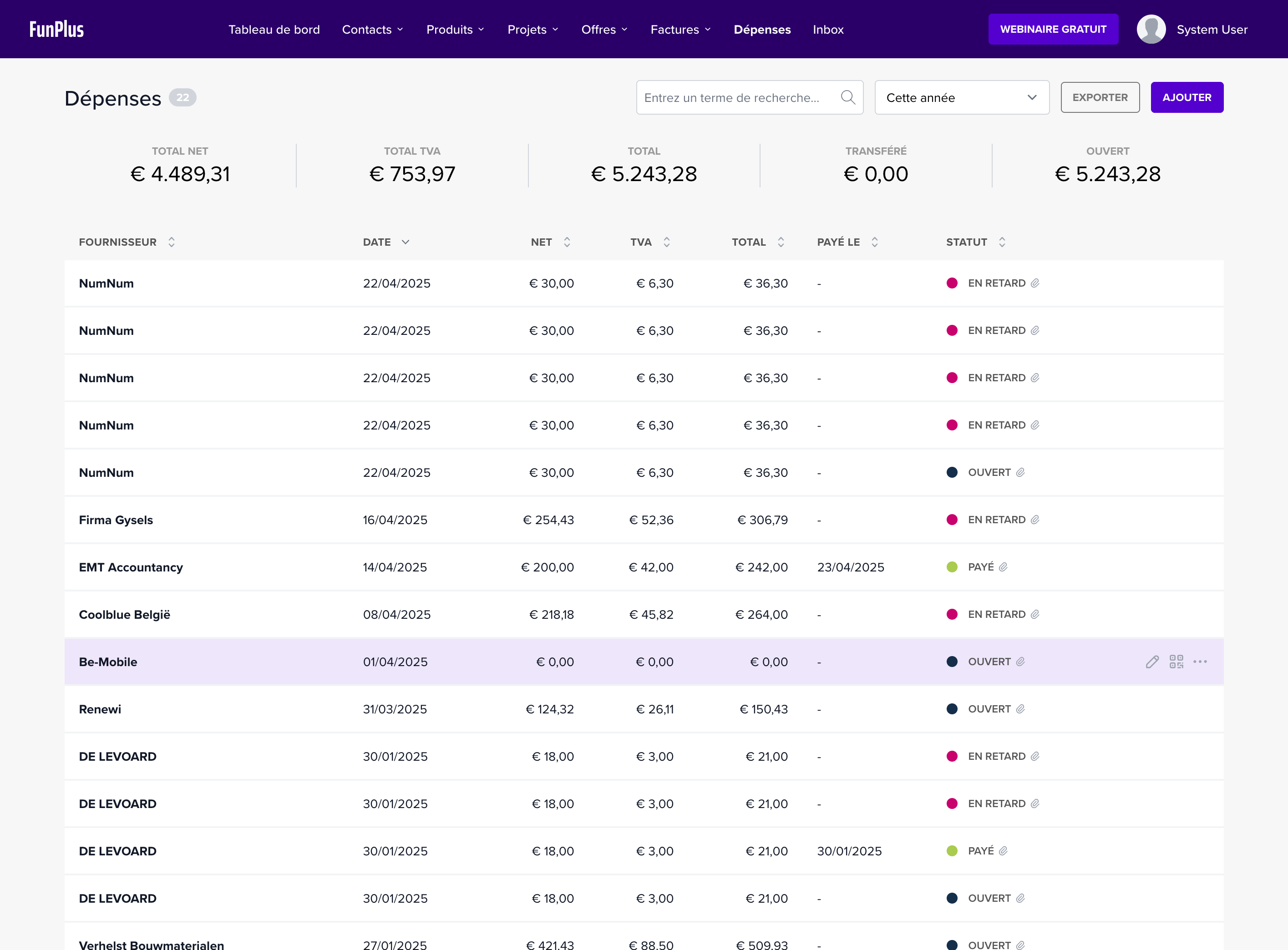 | 4 | Dépenses | Exporter vers le comptable |