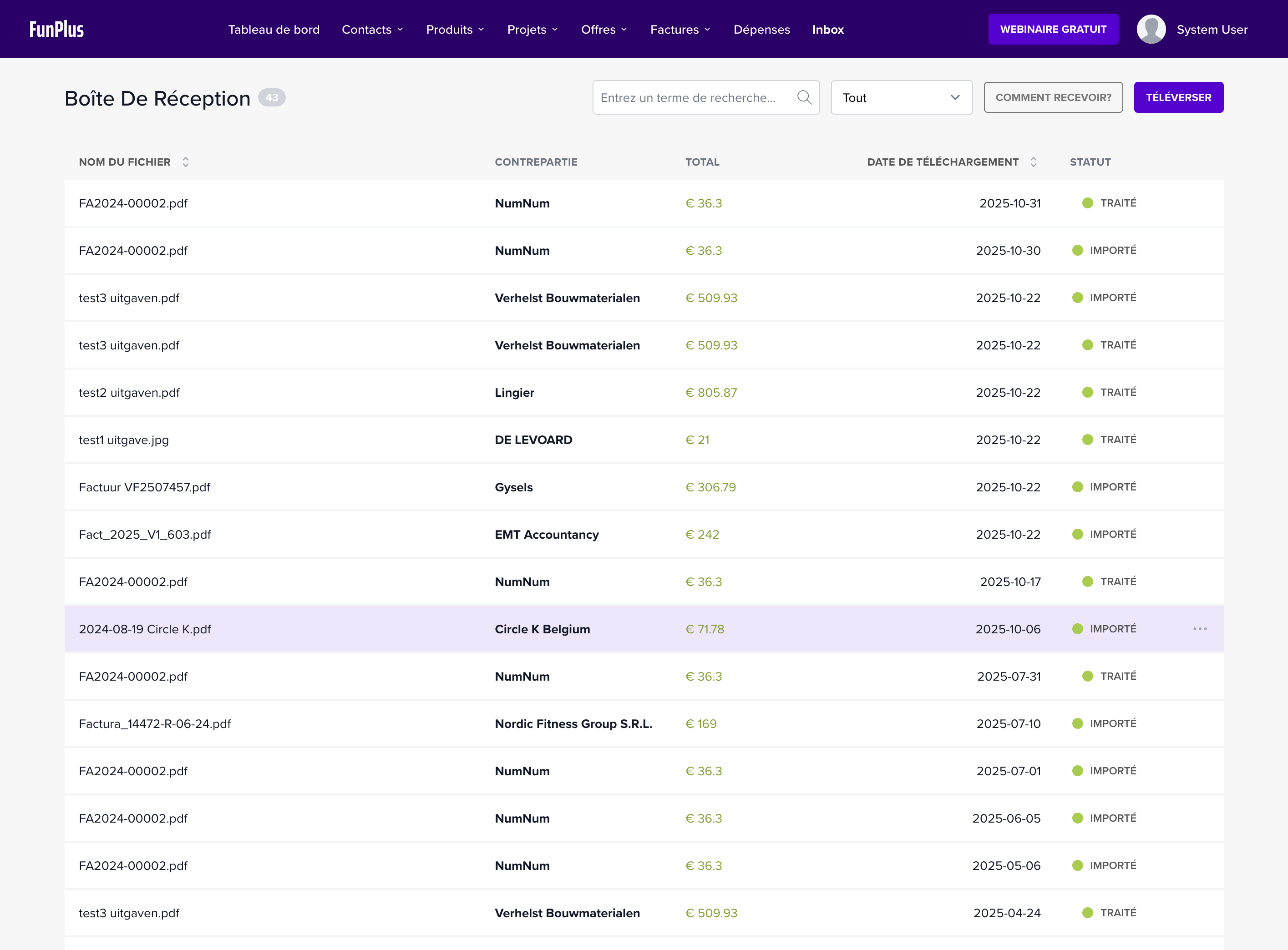 | 1 | Boîte de réception | Recevoir les documents (Peppol, AI Scan) |