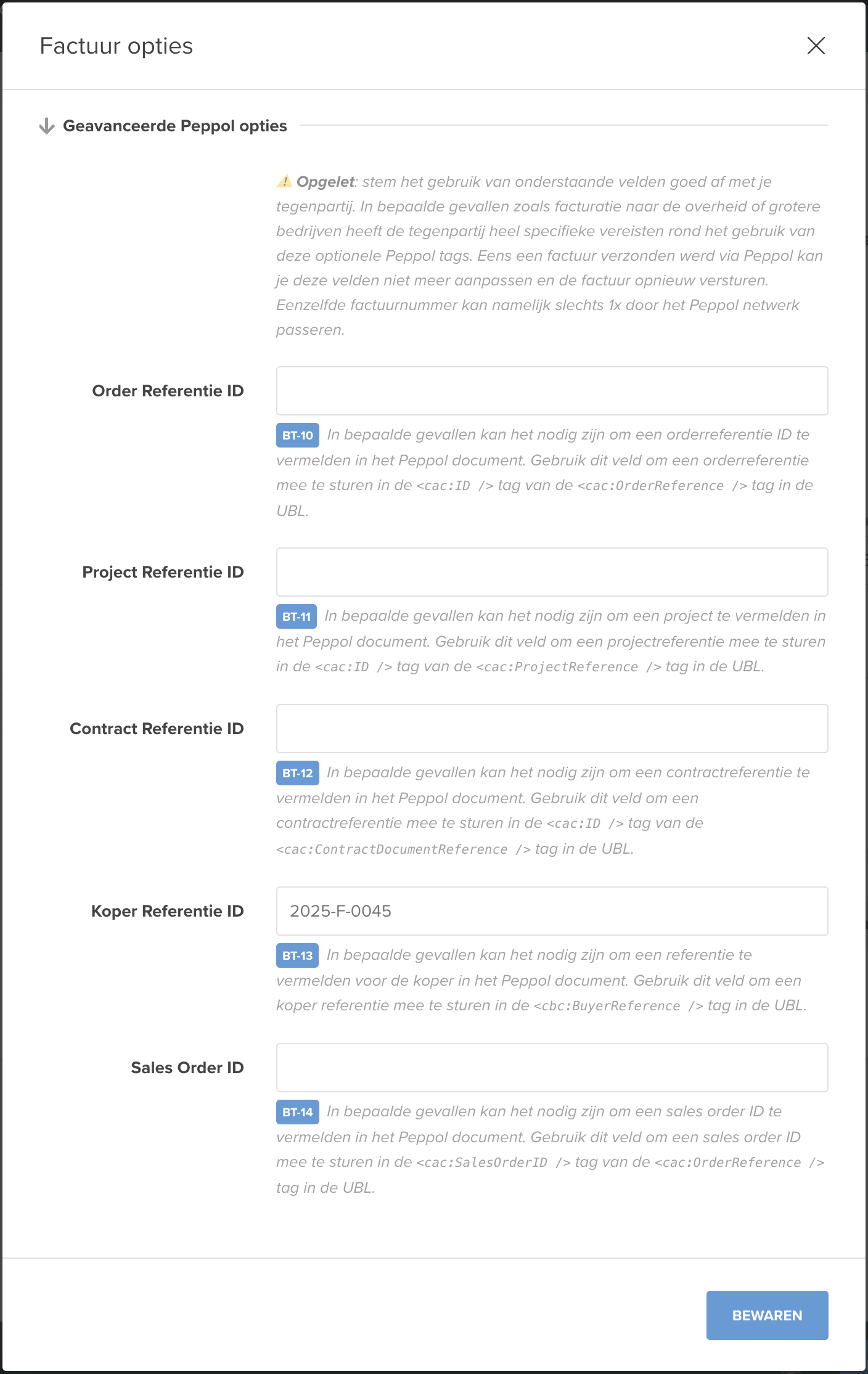 Overheidsinstanties maken gebruik van Mercurius, het Belgische platform dat Peppol-facturen voor de overheid ontvangt en sorteert. Om ervoor te zorgen dat jouw factuur daar correct verwerkt wordt en bij de juiste dienst terechtkomt, is het in veel gevallen verplicht om een ordernummer of PO-nummer mee te geven in de Peppol-factuur.